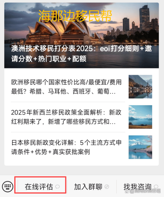正在2026年新政正式实施前,你需要正在这套系统下凑满6分,并满脚一些根基前提。分数次要由两部门形成,你需要从以下“三选一”的技术目标中获得一个根本分,若是根本分不脚6分,则能够通过正在新西兰的技术工做经验来补脚。学历:博士学位能够间接获得6分;硕士学位可得5分;荣誉学士学位或研究生文凭(P)可得4分;学士学位或研究生证书(PGC)可得3分。职业注册:若是你处置的是需要正在新西兰注册的职业(如大夫、工程师等),可按照所需的培训年限获得3至6分。收入:薪资达到新西兰工资中位数的3倍,可间接得6分;达到2倍可得4分;达到1。5倍可得3分。正在递交申请前的5年内,每具有1年合适要求的新西兰技术工做经验,能够加1分,最多可加3分。这里的工做经验需如果技术性的,而且薪资凡是需要达到市场中位数程度。举个例子:若是你具有硕士学位(5分),即可凑满6分。【我合适前提吗?我能移平易近新西兰吗?前提测评入口→公粽皓(海何处移平易近帮),智能大数据系统将正在30s以内,免费生成你的专属移平易近方案,或者间接来绿微找我:hnb202588】