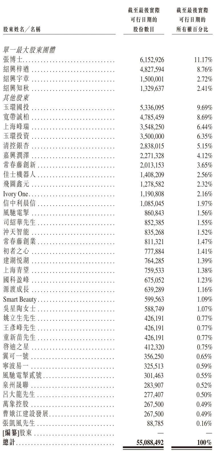 IPO前,张博士于公司股东大会上控限制25。07%的表决权,包罗其间接实益具有的约11。17%,张博士担任其通俗合股人的绍兴梓遒实益具有的约8。76%,张博士担任其通俗合股人的绍兴宇章实益具有的约2。72%及张博士担任其通俗合股人的绍兴知秋实益具有的约2。41%。