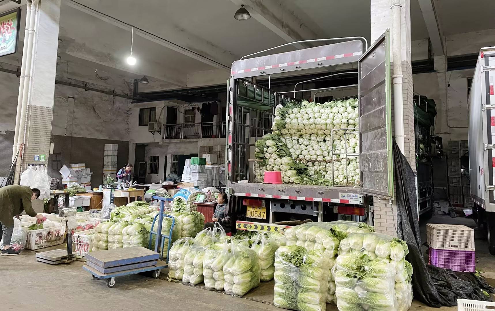 正在蔬菜区隆源蔬菜档口,白萝卜、白菜、西红柿等菜品摆放划一。老板郑家应正忙着清点货色,批示卸车。他从正月初三便开门停业,近两日商超和批发商采购量较着添加,销量稳步上升。