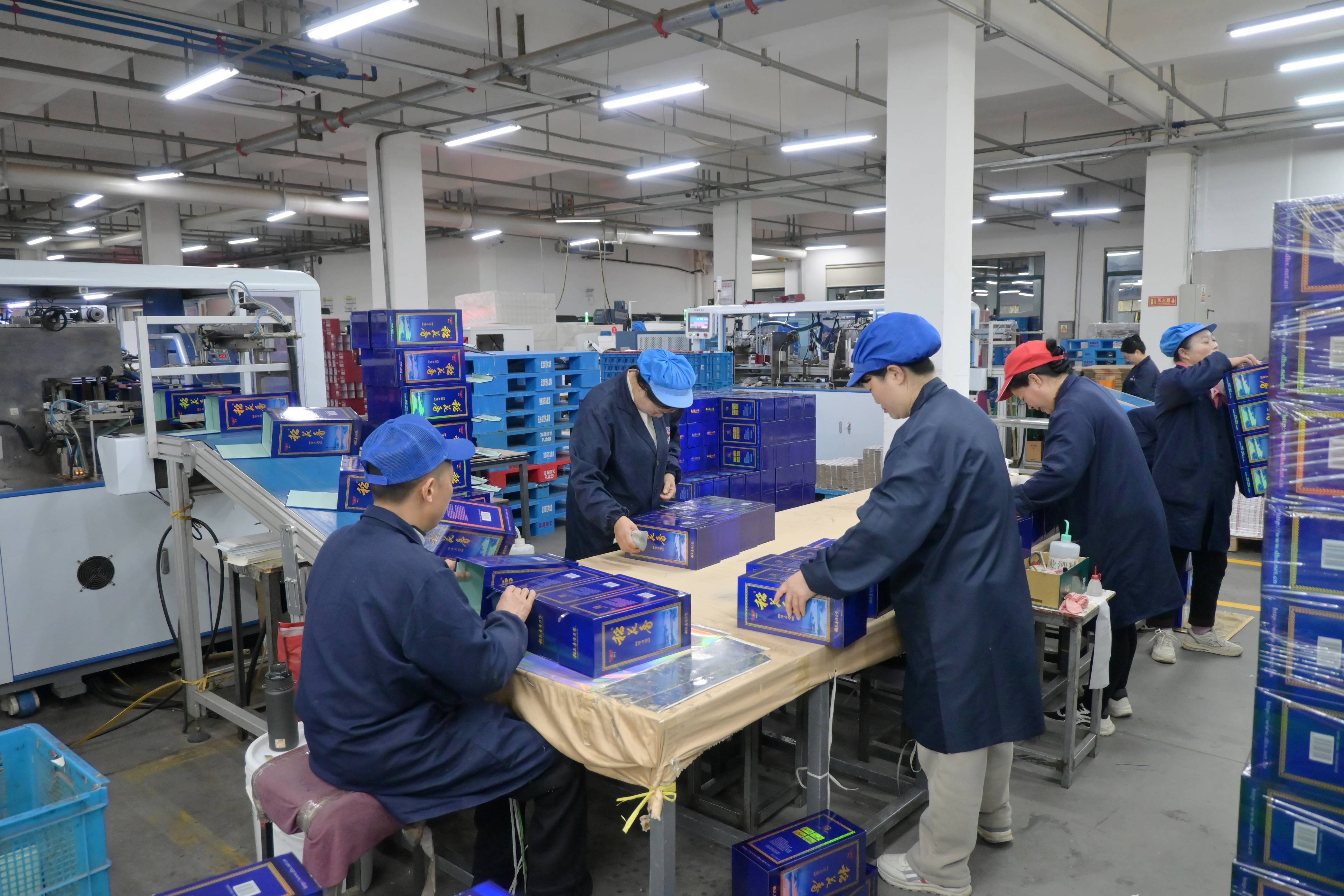 正在出产核心,包拆工人们身着同一工拆,正在出产线上慎密协做,一件件活力型、珍品一号等产物完成各项工序,发往成品库。出产核心工做人员暗示,年前就做好了出产打算和放置,大师正加脚马力,全力保障市场供应。